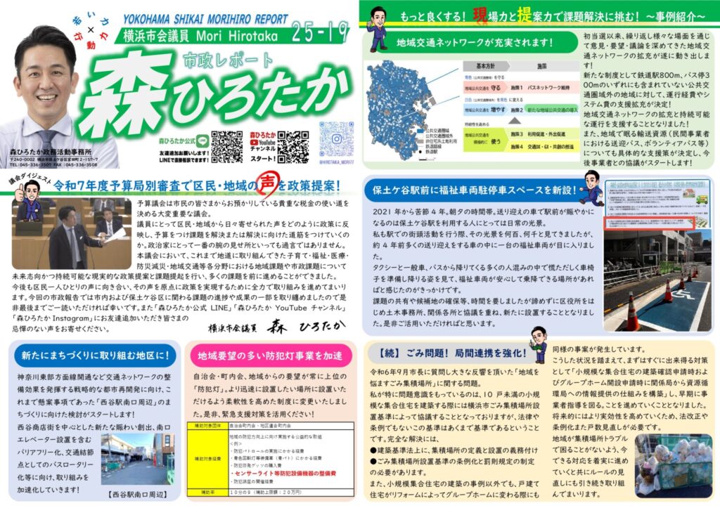 横浜市会議員森ひろたかの日々の地域活動や議会での活動等、ブログでお知らせしております。