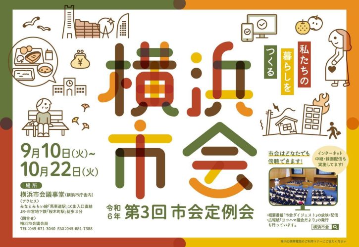 令和6年第3回市会定例会が、9月10日(火)~10月22日(火)に開催されます。