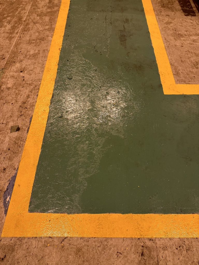 そんな時、鉄鋼時代現場で作業者が安全歩行するためのグリーンベルト(歩道)の両脇に上から黄線を引くことをふと思い出し「モルタルなどで隙間を埋めたら雑草が生えてこないのでは?」と直ぐに所管部署に相談し、試験的に施工していただきました。