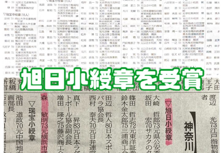 皆さまのご支援によって横浜市会に7期28年間送り出していただきました元横浜市会議員森としあきが、秋の叙勲(令和4年11月3日)にて旭日小綬章を受賞させていただくことになりました。