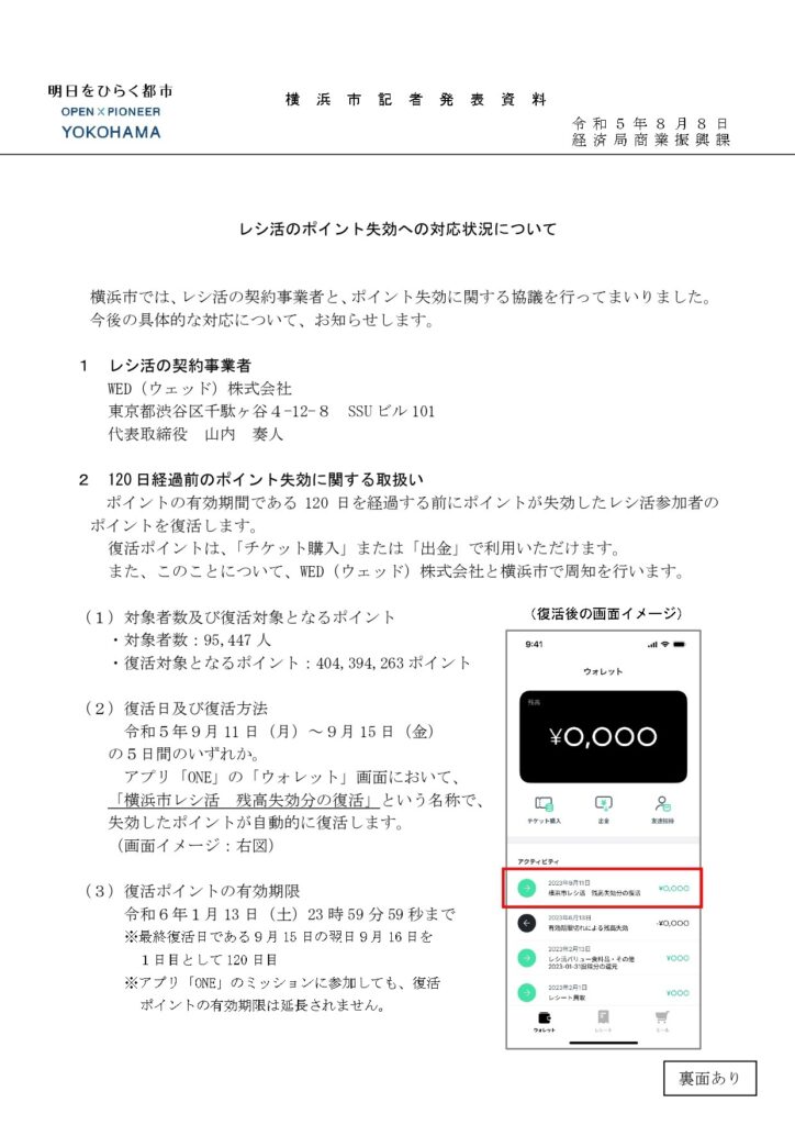 本日「レシ活のポイント失効への対応状況」について記者発表されました。