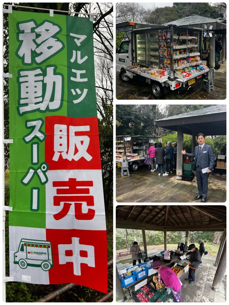 約1年前の地域のつどいでたまたま私の前に座っていたご夫婦が「近くで買い物ができる環境があったらいいわよね」との会話を耳にし、会議の終了後にお声がけをしたことをきっかけに実現した「スーパーマルエツさんによる買い物支援の移動販売」!