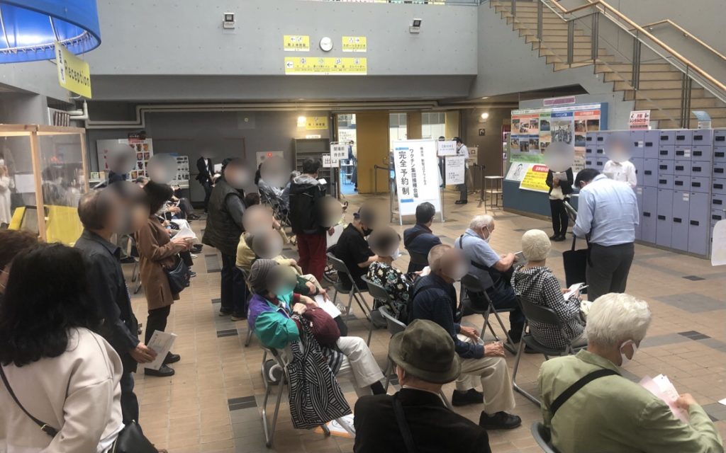 集団接種初日ということもあり、待合場所の混雑や受付遅延等の小さなトラブルはありましたが、順調に接種が進んでおりました。