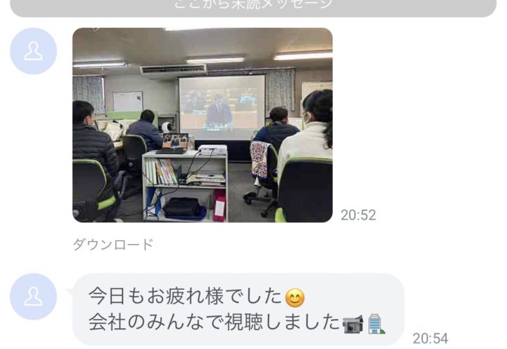 過日3/7の教育委員会予算局別審査の中継を皆さんで閲覧したとのLINE😊