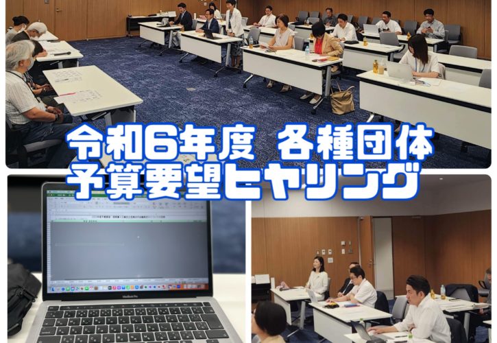 本日6/26〜7/3の日程で令和6年度予算に向けて各種団体予算要望ヒヤリングを実施しています。