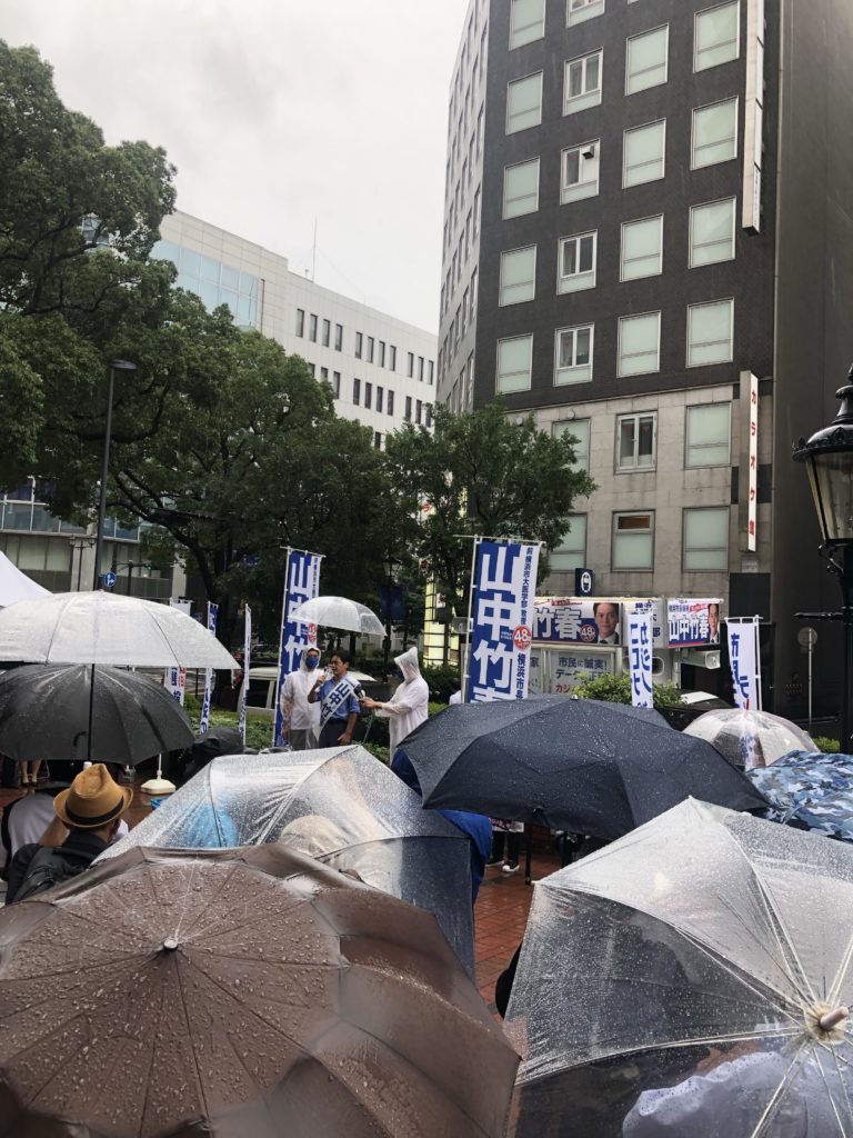本日4年に1度の横浜市長選挙が告示がされ、大雨の中我々が支援する「山中たけはる」が力強く出陣いたしました!