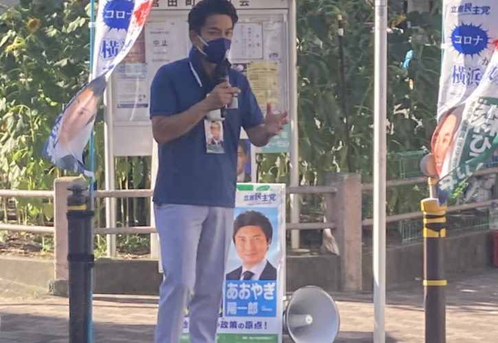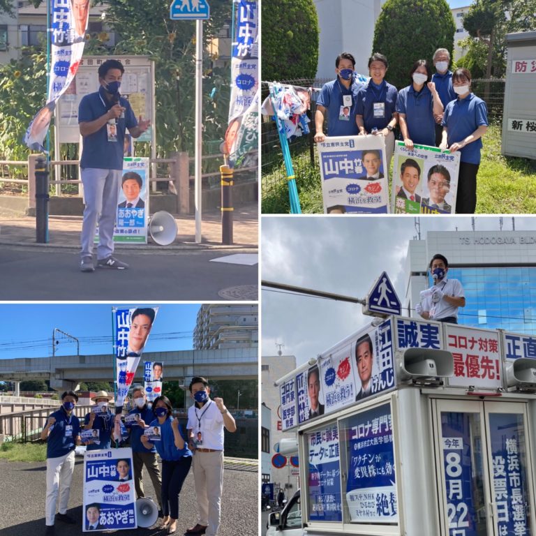 肌を突き刺すような日差しでマスク焼け💦マスクの中は蒸れ、立っているだけで滝のように流れてくる汗を100円均一で購入したクールタオルと首かけハンディ扇風機(500円)で耐え凌ぎながら、仲間とともに区内各所で日々街頭活動を展開しています!