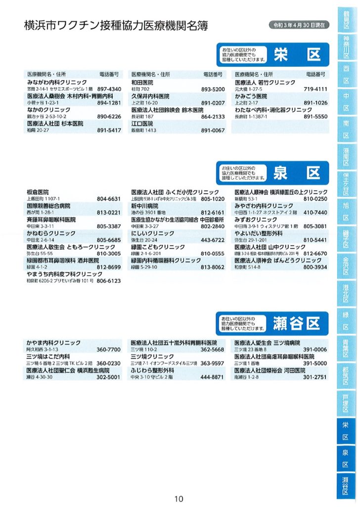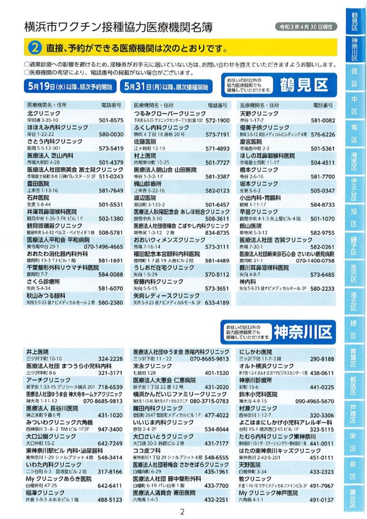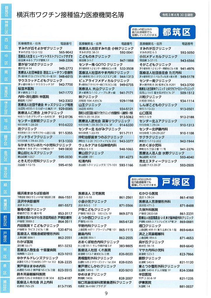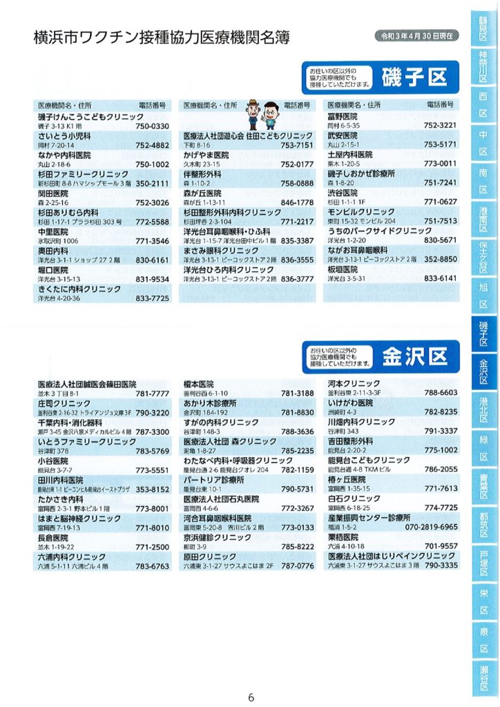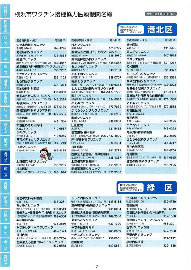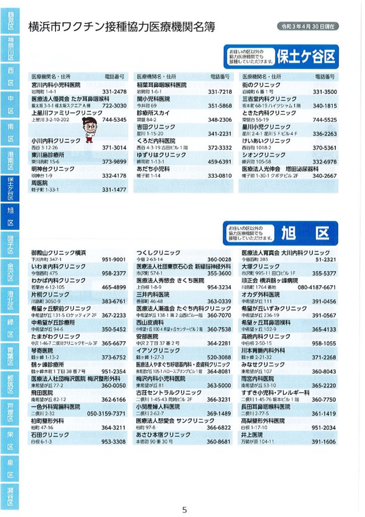 ワクチン接種における協力医療機関が公表されました。 2021 5/17 活動ブログ 本日横浜市ワクチン接種における協力医療機関の一部が示されました。 本冊子では、現段階公表可能な医療機関のみ記載されています。 区役所・地区センター・ケアプラザ等で配布されますので、是非お手に取っていただき、ご確認ください。 活動ブログ よかったらシェアしてね! 円滑なワクチン接種を! ワクチン予約にあたっての注意点 関連記事 噛み具合はご容赦ください! 2026年2月17日 急ピッチで代表質問準備!? 2026年2月15日 支持率が高いうちに逃げきれ解散!? 2026年1月13日 二十歳を迎えた皆さまへ 2026年1月12日 未来に向けて! 2026年1月10日 賀詞交換会 2026年1月4日 2026年がスタート🎍 2026年1月1日 🚨年末年始消防特別警戒🚨 2025年12月29日
