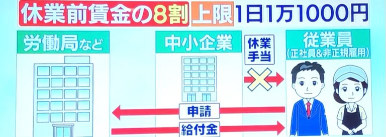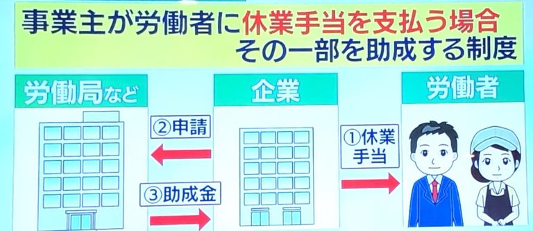 ①雇用調整助成金 ※事業主が労働者に休業手当を支払う場合その一部を助成する制度です。