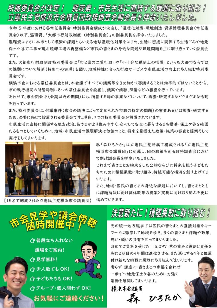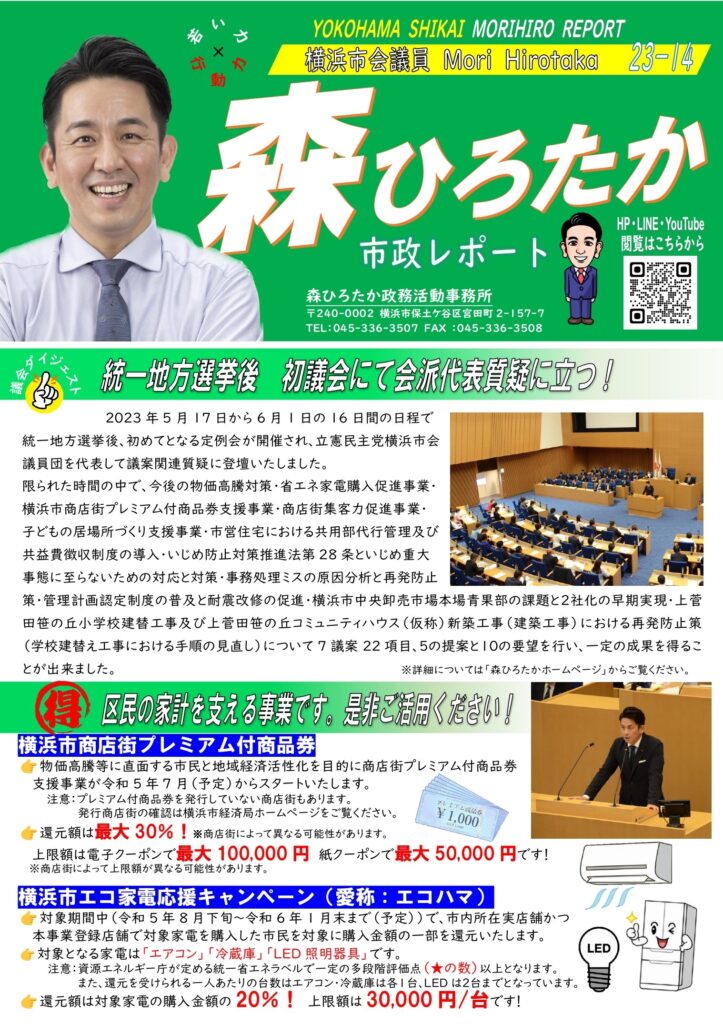 詳細は森ひろたか市政ニュースをご確認ください。※添付資料あります。