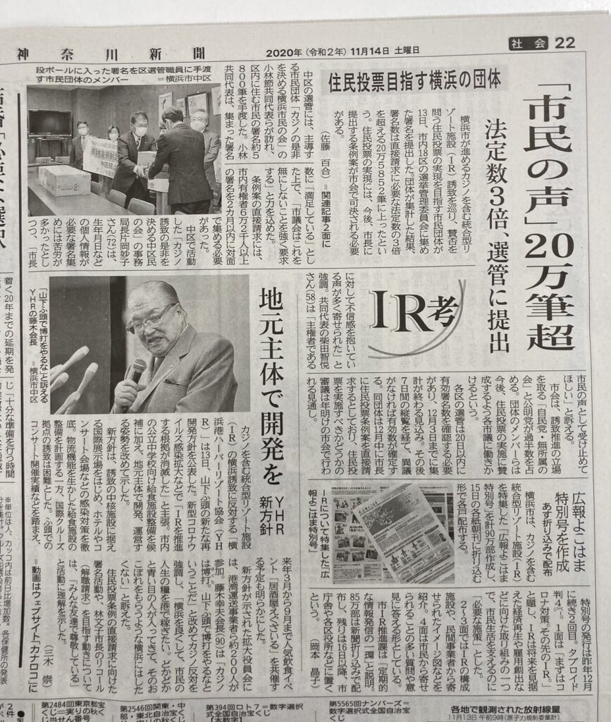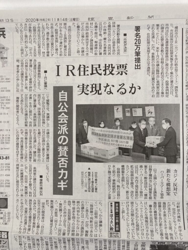 市民一人ひとりがIRカジノ政策の是非について民意を示せる住民投票の実現に向け、粘り強く取り組みを進めてまいります!