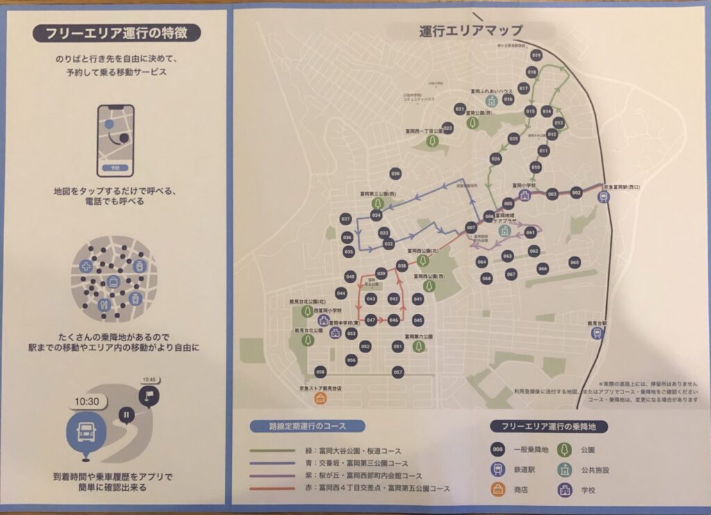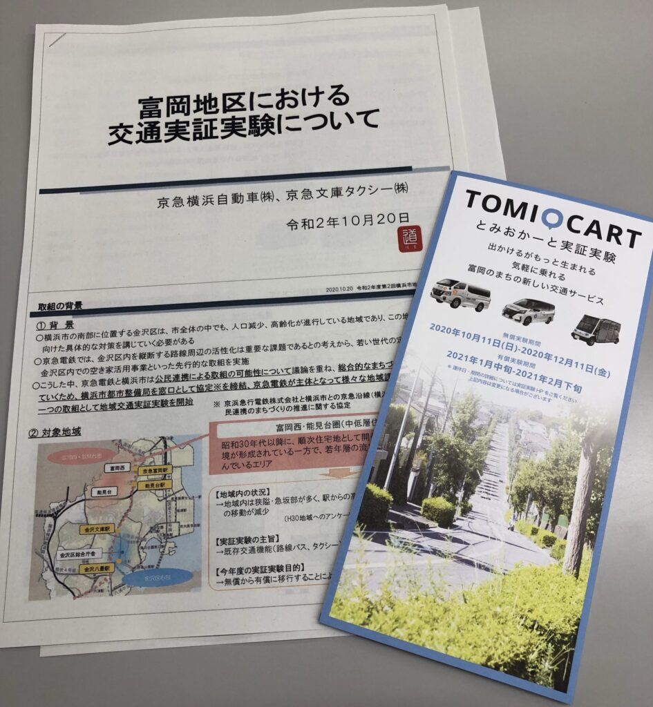 こうした背景の中で、市民の身近な足を確保していくことと定住促進を目的に平成30年より金沢区富岡地区で新しい交通サービス(アプリで乗車予約やタクシーのように手を挙げれば乗車可能など)が実証実験され、市内特有の狭隘・急坂地に柔軟性と利便性を兼ね備えたサービスが展開されています。
