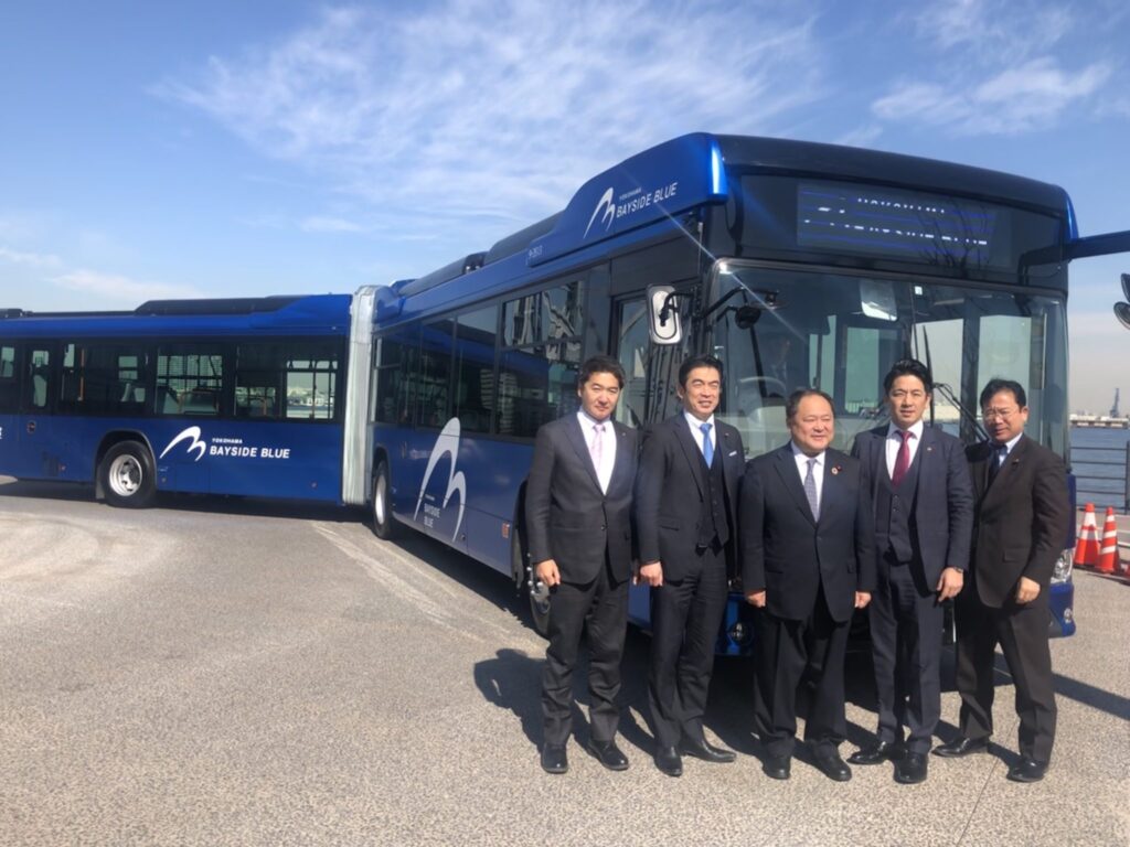 本日遂に国内初となる「連節バス YOKOHAMA BAYSIDE BLUE」が横浜ハンマーヘッドに上陸!