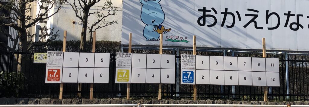 ちなみに左から知事選挙、県会議員選挙、市会議員選挙の掲示板です!