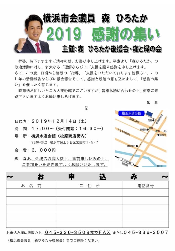 感謝の集いを開催します!是非ご参加ください! 2019 10/17 お知らせ 市政レポート お知らせ 市政レポート よかったらシェアしてね! 森ひろたか市政レポート19-2を発行いたしました。 不安定な天気の合間に! 関連記事 森ひろたか市政レポート25−20を発行しました。 2025年10月24日 令和8年度予算要望書を提出!! 2025年10月23日 今年も開催します! 2025年10月8日 【緊急募集】動画編集スタッフ大大大募集! 2025年8月19日 森ひろたか市政レポート25-19を発行しました。 2025年3月26日 「森ひろたか 市政レポート24−18」を発行いたしました! 2024年10月31日 森ひろたか2024年市政報告・感謝の集いを開催! 2024年10月31日 来たる!泉健太代表! 2024年6月5日